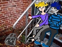 Schulgebäudes zu. Er schien sich hier auszukennen. Mit einem Plumps ließen sie sich auf eine breite Metallstufe der Treppe fallen. Ihr gemeinsames