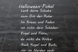 sie zuerst nach dem Halloween-Pokal suchen würden, trugen beide ihr Halloween-Kostüm in einer Plastiktüte mit sich. Auf das