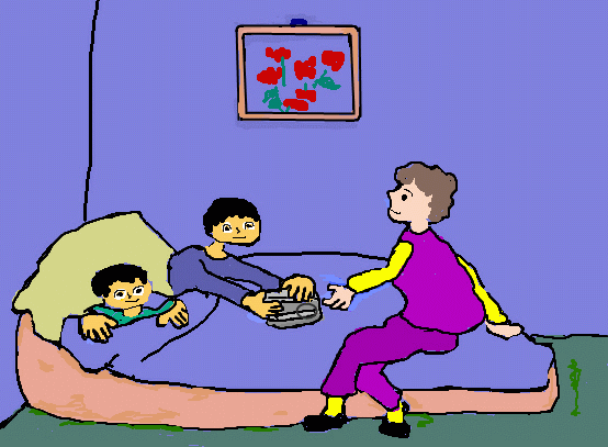 "Ihr brauchst keine Angst vor Monstern zu haben", beruhigt Oma die Jungen. "Vicky sitzt vor der Tür und vertreibt alle Monster. Sie hat keine Angst vor Monstern. Und wehe, ein Monster kommt. Vicky vertreibt alle!"