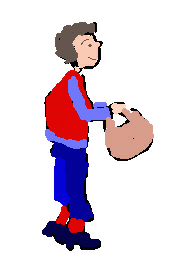 Frau Peters nimmt den Korb und geht damit zu den Blumenbeeten hinter dem Gewächshaus, um die Stiefmütterchen auszugraben.
