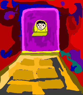 Nach einigem Hin und Her gibt er den Namen richtig ein, und im nächsten Augenblick ist er verschwunden. An Stelle des Pförtnerhäuschens erscheint der Eingang zu einem finsteren Wald.