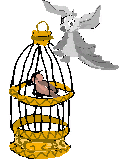 Wütend stellt sich die böse Erzzauberin Ede in den Weg. "Das sind meine Vögel!" kreischt sie aufgebracht. Aber sie kann sich ihm nur bis auf zwei Meter nähern.
