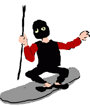 "Ein Hacker. Diese Typen trifft man überall im Internet. Sie werfen ihre Harpunen aus, um Datenpakete zu erbeuten. Vor denen mußt du dich in Acht nehmen. Sie sind vermummt und machen sich einen Spaß daraus, beim Vorbeigleiten mit der Harpune nach dir zu stechen."