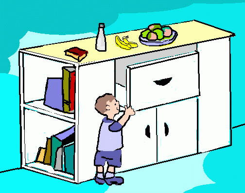 In der Küche gibt es ein riesengroßes Schrankfach voll Schokolade, Mais und Kartoffelbrei.