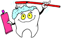 Der Geist ist schon fleißig mit Zähneputzen im Badezimmer beschäftigt, denn er muss ja zweimal jährlich zum Zahnarzt gehen.
