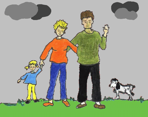mit ihrem Ehemann, Hündin und Kind.