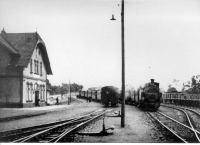 Sie gehen gemeinsam zum Bahnhof. Dort warten mehrere Frauen und Kinder auf die Ankunft des Zuges.