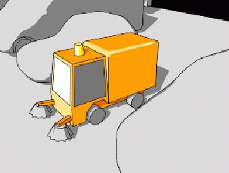 Und dann kommt ein Auto. Eine Straßenkehrmaschine.