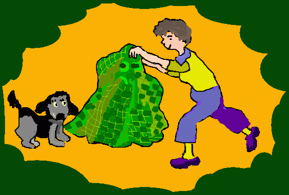 Am Samstagmorgen entfernt Oma den Schonbezug von Vickys Sessel und bringt ihn in die Waschküche.