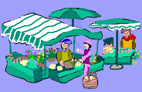 Sieh da, ein Wochenmarkt! Dort ist bestimmt was los!