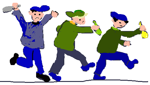 Die jungen Männer rennen davon, als wäre ein Zombie hinter ihnen her.