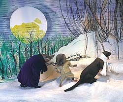 Es schneit. Moli, der Maulwurf, und Ratz, die Wasserratte, haben sich im Wald verirrt. Wie finden sie den Eingang zu Dachs Wohnung?