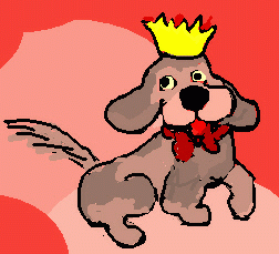 Da nimmt Robin seine Königskrone ab. Er setzt sie probeweise Domino auf den Kopf. Die Krone passt.