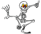 Doch kaum haben die Kinder den Eingang der Ruine erreicht, sehen sie drei gruselige Knochengerippe davor tanzen. Die Gerippe wollen sie nicht durchlassen.