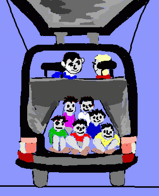 "Hallo!" Ein halbes Dutzend Kinder lacht ihnen entgegen. Die Kids sitzen im Schneidersitz im hinteren Teil des Leichenwagens, wo sonst ein Sarg transportiert wird, und freuen sich über die Unterbrechung der langweiligen Fahrt.
