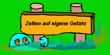 Ein lilafarbener Wuschelkopf taucht blitzschnell im Zelteingang auf. "Wer meckert, wird GEFRESSEN!" Sogleich ist der Kopf wieder verschwunden.