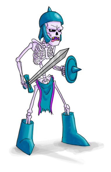 Die Tür wird von einem bewaffneten Skelett bewacht. Aufgeregt schnüffelt Domino an der Türschwelle, was dem Wächter missfällt.
