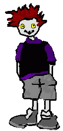 feuerrote Stachelhaare, eine käseweiße Gesichtsfarbe, gelbe Augen und trug die ganz gewöhnliche Kleidung eines Jungen.