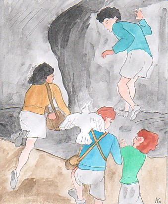 Die vier Kinder sind entschlossen, den Schatz zu suchen. Die Wegweiser sind: die Stelle, wo